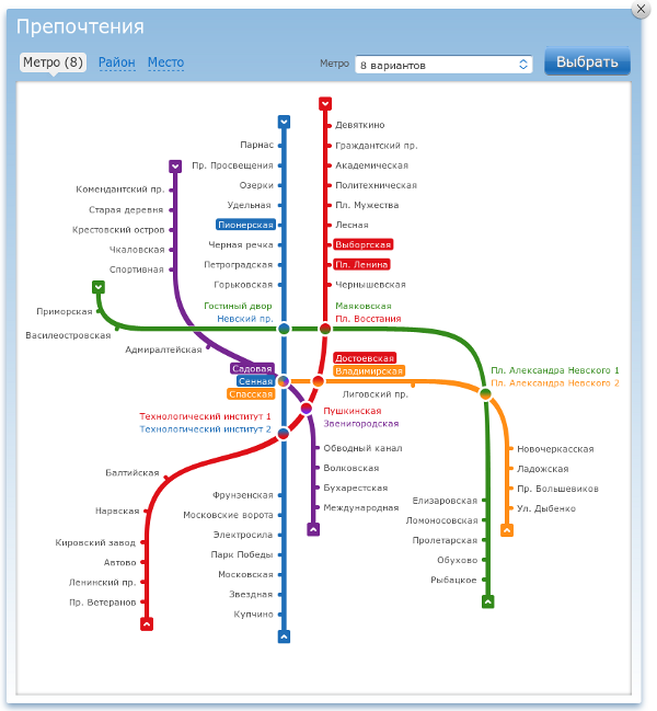 Карта метро и районов СПб