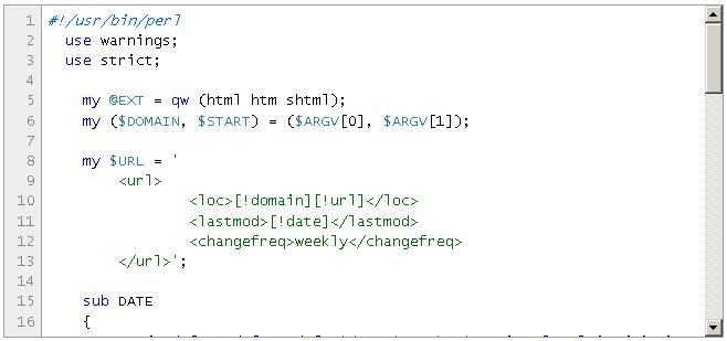 <p>Я наал штамповать сайты 1 в сутки и ессно нужно создавать к ним sitemap для ьыстрейшего индексирования ну и вообще это по правилам уже, руками не создашь ессно для 1000 страниц, поэтому пришлось прибегнуть к знаниям перла и написать скрипт который обходит рекурсвино указанную иректорию и оздаёт <strong>sitemap</strong></p>